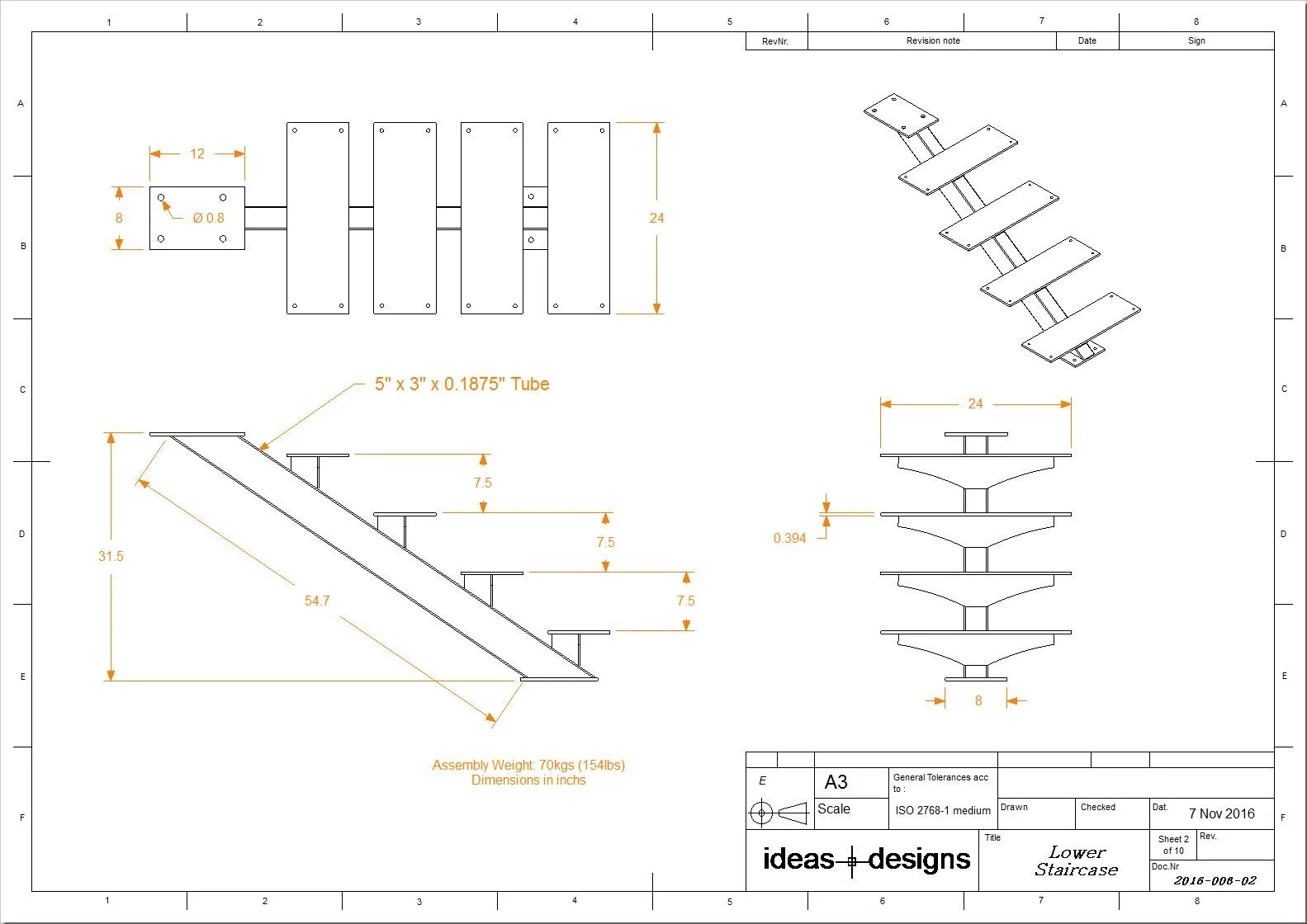 With the ideas provided by the client, I went to work and created a few versions and renders. By the 3rd revision the client was happy to move forward. The final design comprised of a single spine back with floating treads, accompanied by stainless cables running between the stanchions. The desired outcome was an open look with dark highlights that would vanish when looking at the lake yet having clean neat lines when taking in the railing.